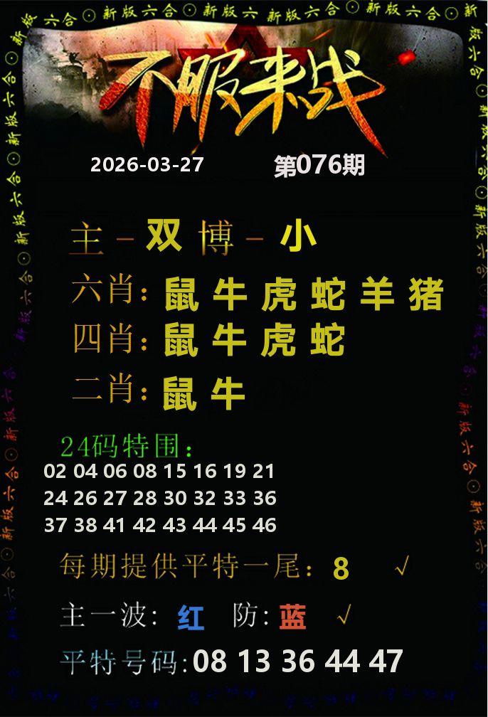 071期:A级大公开:676383.COM长跟必赢 071期四肖:【牛龙虎鼠】 八码:【06 30 03 27 05 17 31 43】 071期三肖:【牛龙虎】 六码:【06 30 03 27 05 17】 071期二肖:【牛龙】 四码:【06 30 03 27】 071期:一肖一码【牛06】信心十足,大胆下注!
