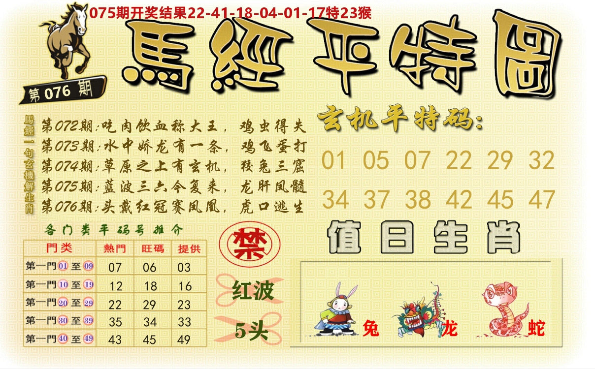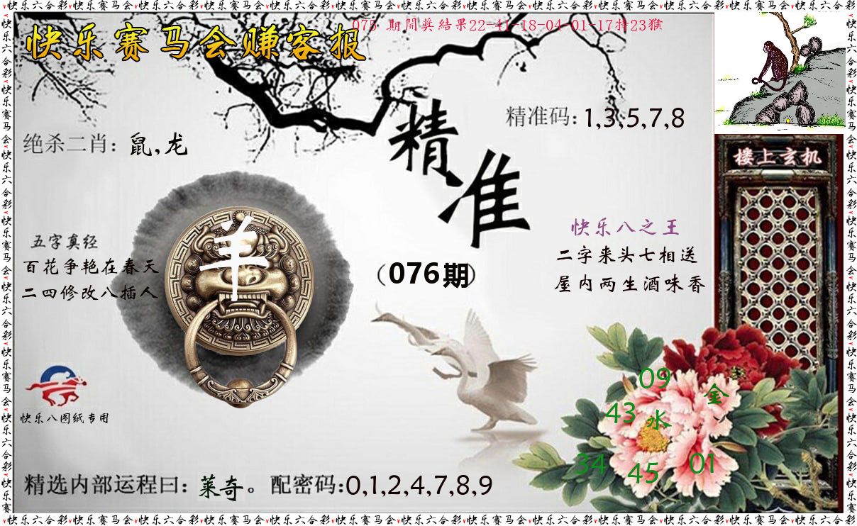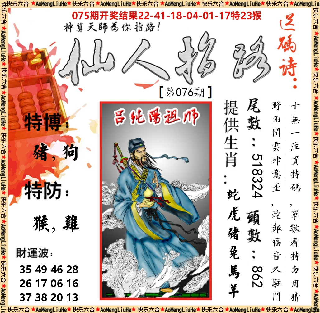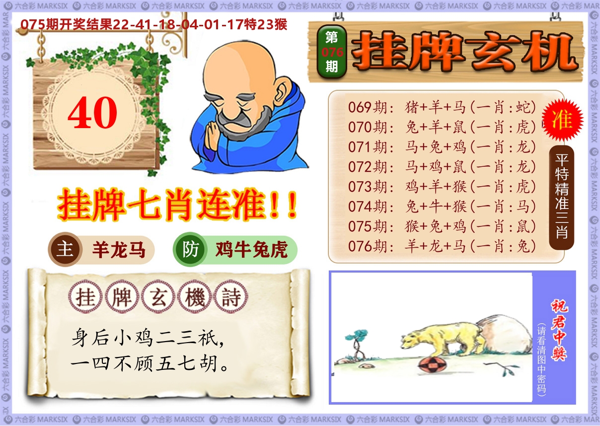 075期:绝杀三肖【羊猪兔】开:猴23准